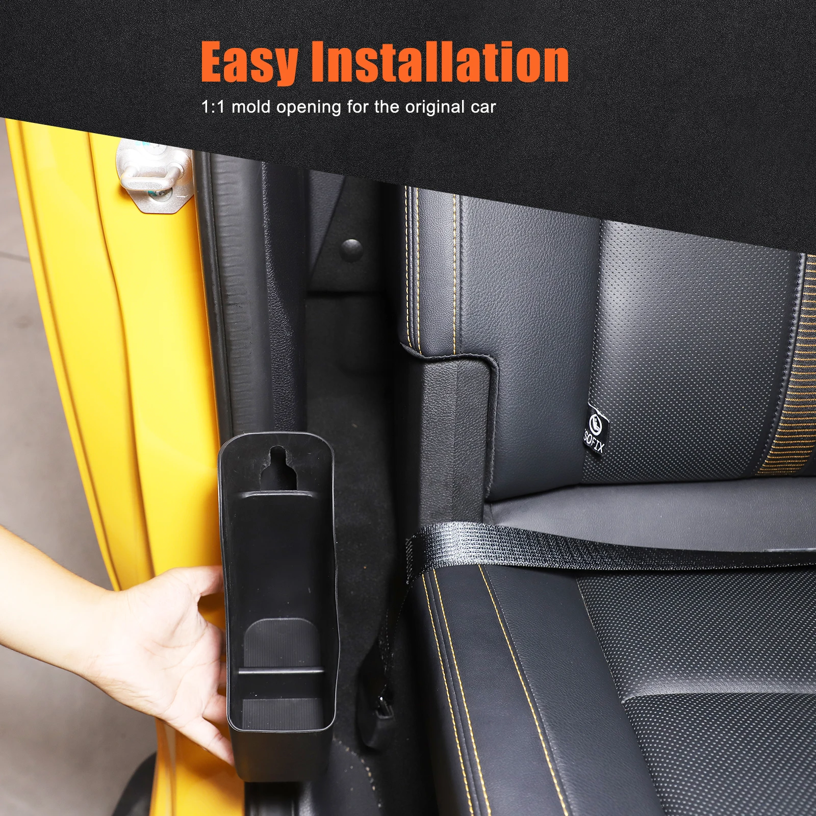 The FordoMondo™ Rear Seat Side Storage Organizer installs beside the rear seats to create a convenient compartment for small items such as bottles, tools, cables, wipes, or everyday accessories. It helps keep the cabin tidy while making frequently used items easy to access for rear passengers.