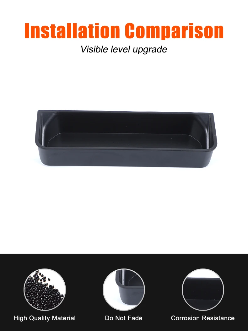 Made from durable ABS plastic with a clean black finish, the tray blends seamlessly with the factory console and enhances interior organization without changing the original look of the vehicle.