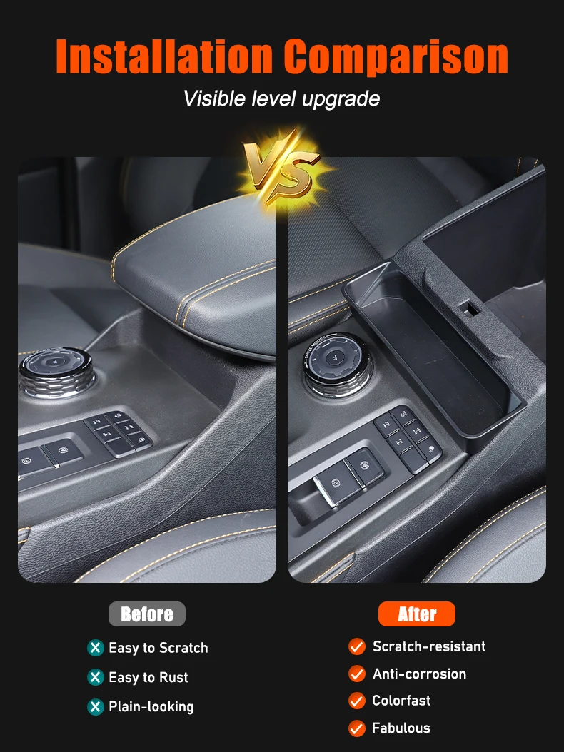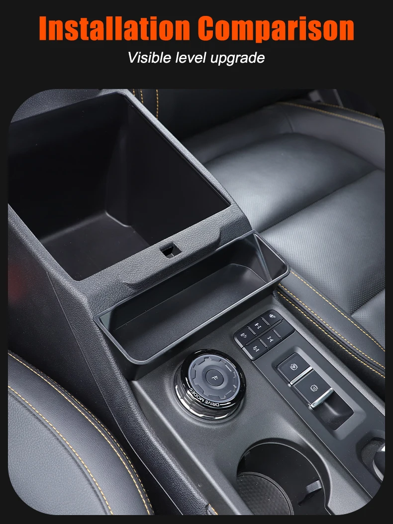 The FordoMondo™ Front Console Organizer Tray fits inside the armrest / front storage area to create dedicated compartments for small everyday items such as keys, coins, cards, cables, or sunglasses. It helps reduce clutter while keeping essential items easy to access while driving.